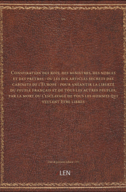 Conspiration des rois, des ministres, des nobles et des prêtres : ou l... 15,00 € Sélectionner le voteGive it 1/5Give it 2/5Give it 3/5Give it 4/5Give it 5/5 Aucun vote pour le moment