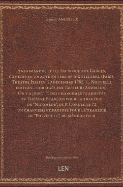 Anaximandre, ou le Sacrifice aux Grâces, comédie en un acte en vers de... 15,00 € Sélectionner le voteGive it 1/5Give it 2/5Give it 3/5Give it 4/5Give it 5/5 Aucun vote pour le moment