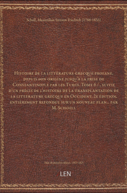 Histoire de la littérature grecque profane, depuis son origine jusqu'à... 160,00 € Sélectionner le voteGive it 1/5Give it 2/5Give it 3/5Give it 4/5Give it 5/5 Aucun vote pour le moment