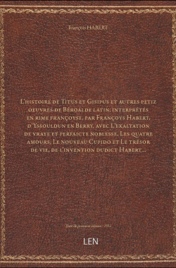 L'histoire de Titus et Gisipus et autres petiz oeuvres de Béroalde lat... 25,00 € Sélectionner le voteGive it 1/5Give it 2/5Give it 3/5Give it 4/5Give it 5/5 Aucun vote pour le moment