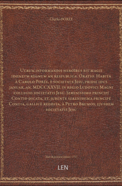 Utrum informandis heroïbus sit magis idoneum regnum an respublica . Or... 20,00 € Sélectionner le voteGive it 1/5Give it 2/5Give it 3/5Give it 4/5Give it 5/5 Aucun vote pour le moment