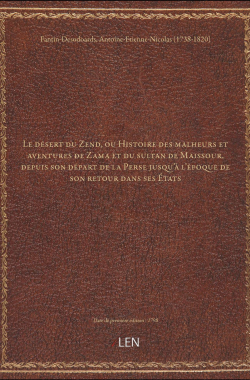 Le désert du Zend, ou Histoire des malheurs et aventures de Zama et du... 75,00 € Sélectionner le voteGive it 1/5Give it 2/5Give it 3/5Give it 4/5Give it 5/5 Aucun vote pour le moment