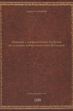Hommage à l'armée d'Orient. Les Échos de la Crimée, poésies par Gustav... 20,00 € Sélectionner le voteGive it 1/5Give it 2/5Give it 3/5Give it 4/5Give it 5/5 Aucun vote pour le moment