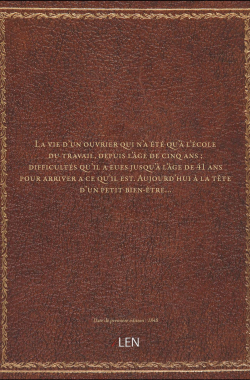 La vie d'un ouvrier qui n'a été qu'à l'école du travail, depuis l'âge ... 20,00 € Sélectionner le voteGive it 1/5Give it 2/5Give it 3/5Give it 4/5Give it 5/5 Aucun vote pour le moment