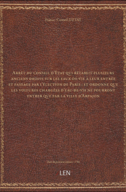 Arrêt du conseil d'Etat qui rétablit plusieurs anciens droits sur les ... 20,00 € Sélectionner le voteGive it 1/5Give it 2/5Give it 3/5Give it 4/5Give it 5/5 Aucun vote pour le moment