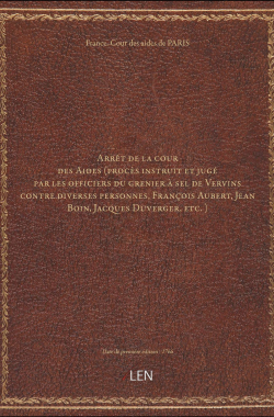 Arrêt de la cour des Aides (procès instruit et jugé par les officiers ... 20,00 € Sélectionner le voteGive it 1/5Give it 2/5Give it 3/5Give it 4/5Give it 5/5 Aucun vote pour le moment