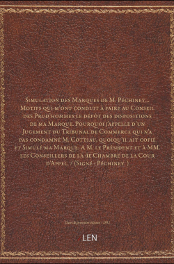 Simulation des Marques de M. Péchiney... Motifs qui m'ont conduit à fa... 20,00 € Sélectionner le voteGive it 1/5Give it 2/5Give it 3/5Give it 4/5Give it 5/5 Aucun vote pour le moment