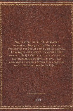 Pâques socialistes (N° 145) [nombre manuscrit] Banquet des Démocrates ... 15,00 € Sélectionner le voteGive it 1/5Give it 2/5Give it 3/5Give it 4/5Give it 5/5 Aucun vote pour le moment