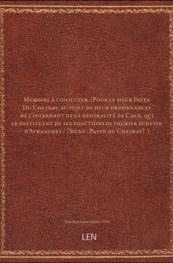 Mémoire à consulter. (Pour le sieur Payen Du Chesnay, au sujet de deux... 20,00 € Sélectionner le voteGive it 1/5Give it 2/5Give it 3/5Give it 4/5Give it 5/5 Aucun vote pour le moment