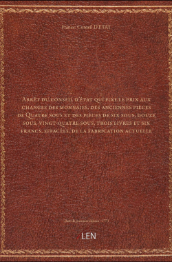 Arrêt du conseil d'état qui fixe le prix aux changes des monnaies, des... 20,00 € Sélectionner le voteGive it 1/5Give it 2/5Give it 3/5Give it 4/5Give it 5/5 Aucun vote pour le moment