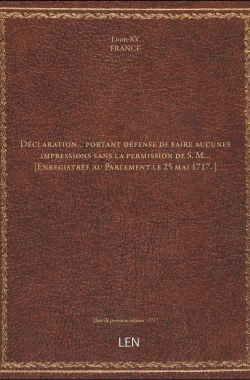 Déclaration... portant défense de faire aucunes impressions sans la pe... 20,00 € Sélectionner le voteGive it 1/5Give it 2/5Give it 3/5Give it 4/5Give it 5/5 Aucun vote pour le moment