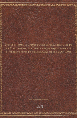 Notes chronologiques pour servir à l'histoire de la Maçonnerie, et rit... 50,00 € Sélectionner le voteGive it 1/5Give it 2/5Give it 3/5Give it 4/5Give it 5/5 Aucun vote pour le moment