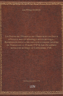 Les Festes de l'Hymen et de l'Amour ou les Dieux d'Egypte, ballet héro... 65,00 € Sélectionner le voteGive it 1/5Give it 2/5Give it 3/5Give it 4/5Give it 5/5 Aucun vote pour le moment