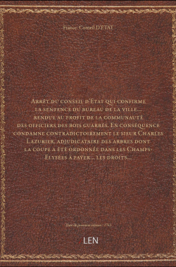 Arrêt du conseil d'Etat qui confirme la sentence du bureau de la ville... 20,00 € Sélectionner le voteGive it 1/5Give it 2/5Give it 3/5Give it 4/5Give it 5/5 Aucun vote pour le moment