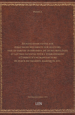 Signification faites aux directeurs des droits sur les cuirs, par les ... 20,00 € Sélectionner le voteGive it 1/5Give it 2/5Give it 3/5Give it 4/5Give it 5/5 Aucun vote pour le moment
