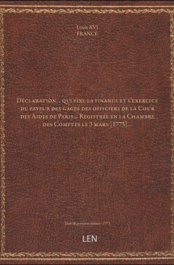 Déclaration... qui fixe la finance et l'exercice du payeur des gages d... 20,00 € Sélectionner le voteGive it 1/5Give it 2/5Give it 3/5Give it 4/5Give it 5/5 Aucun vote pour le moment